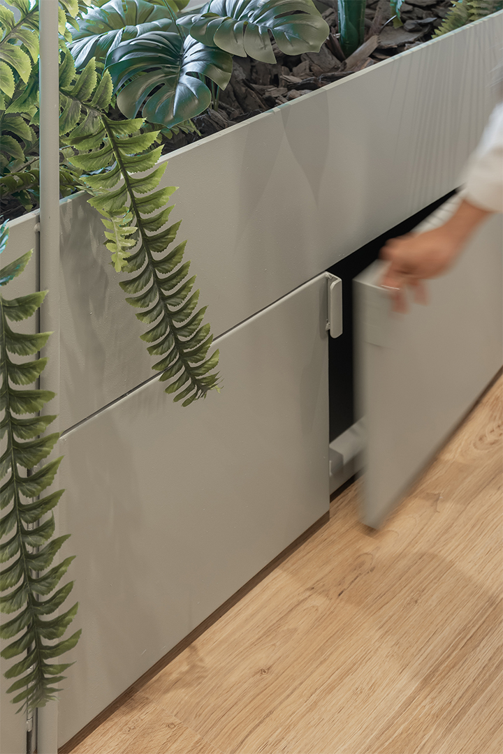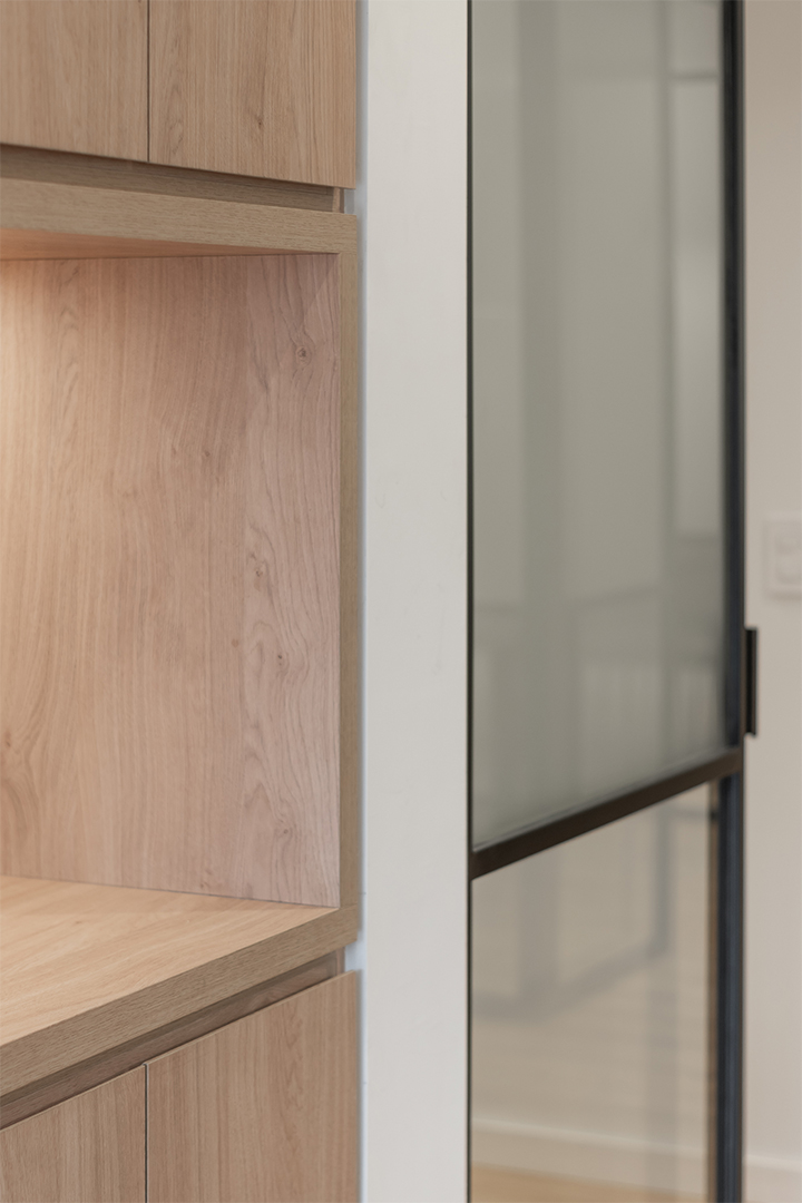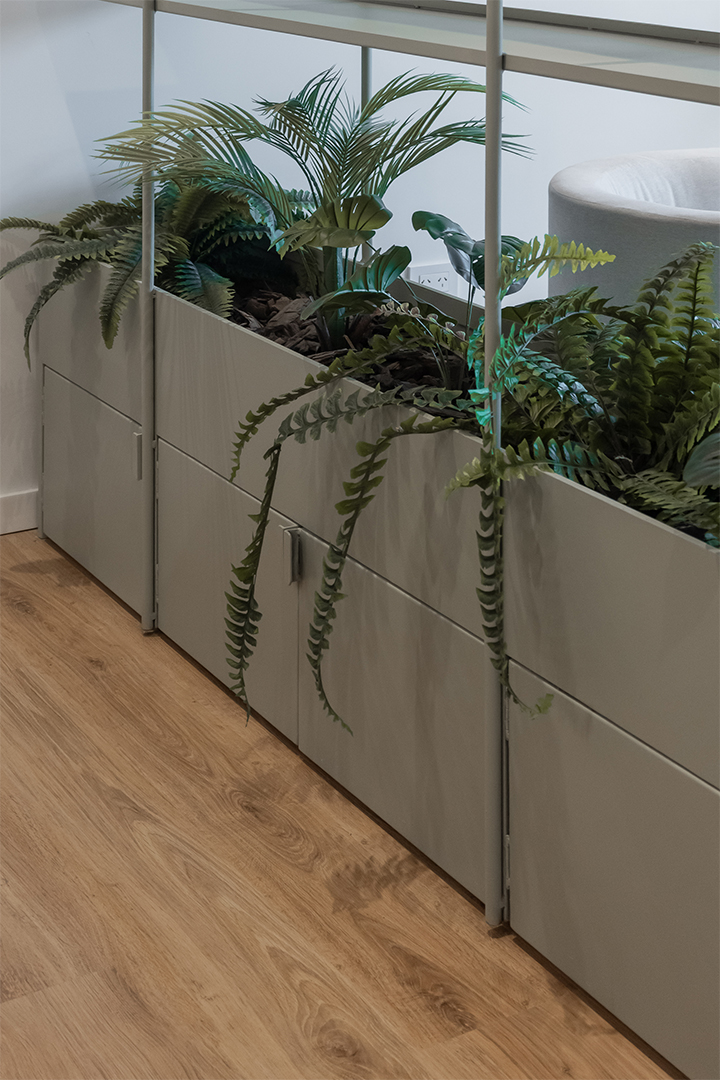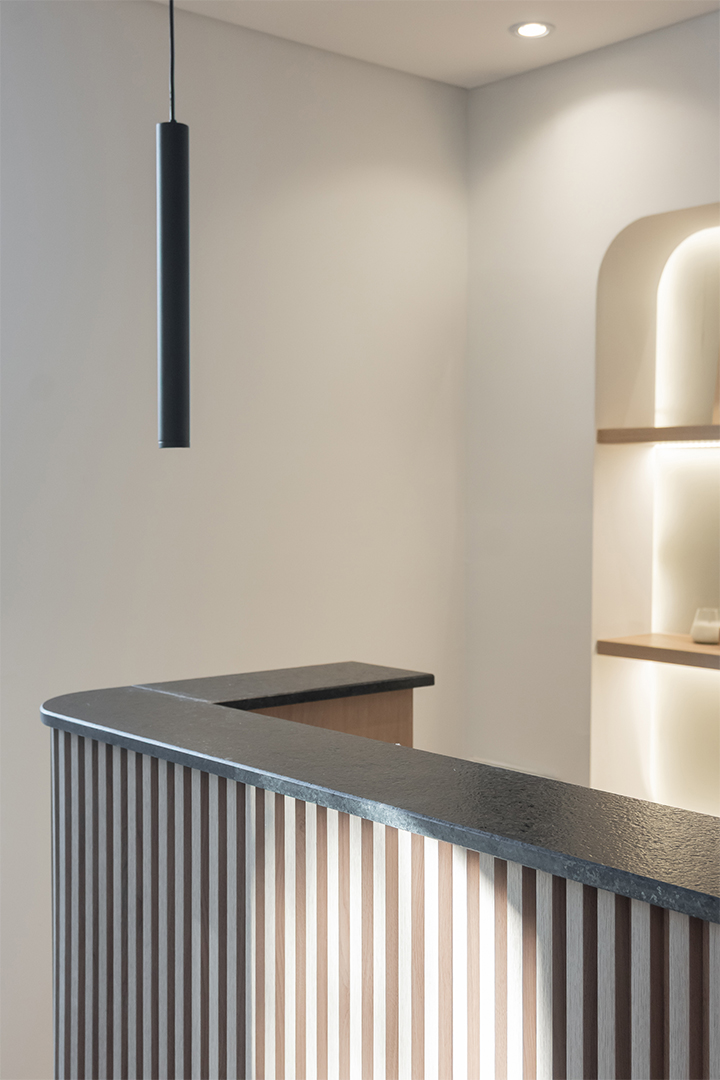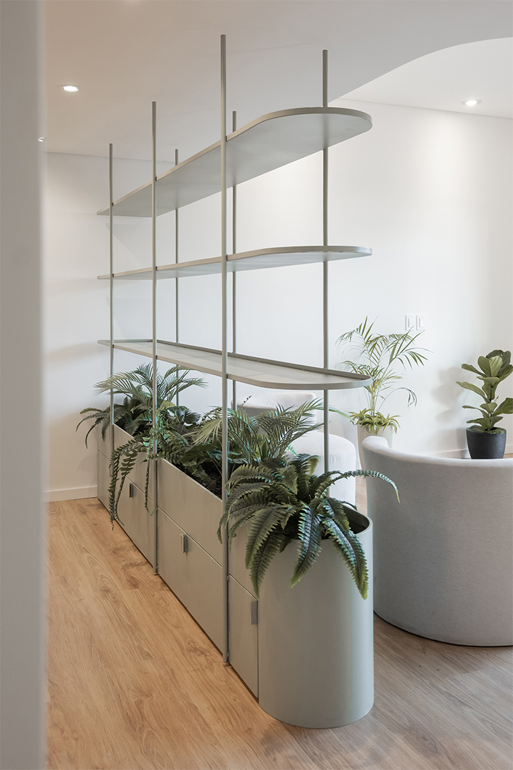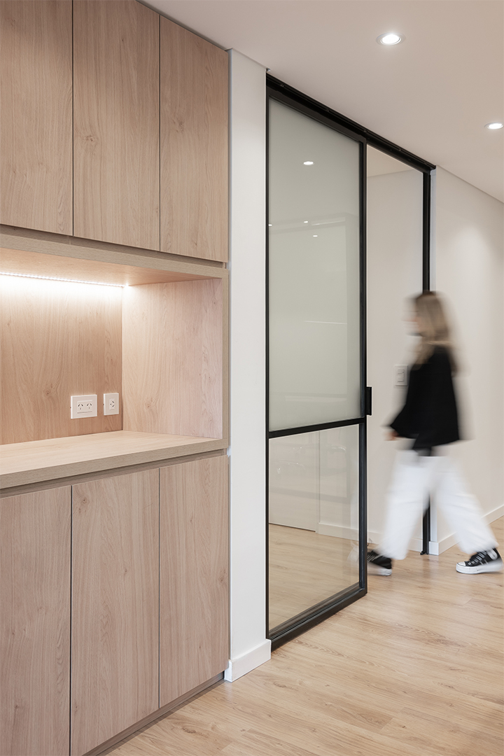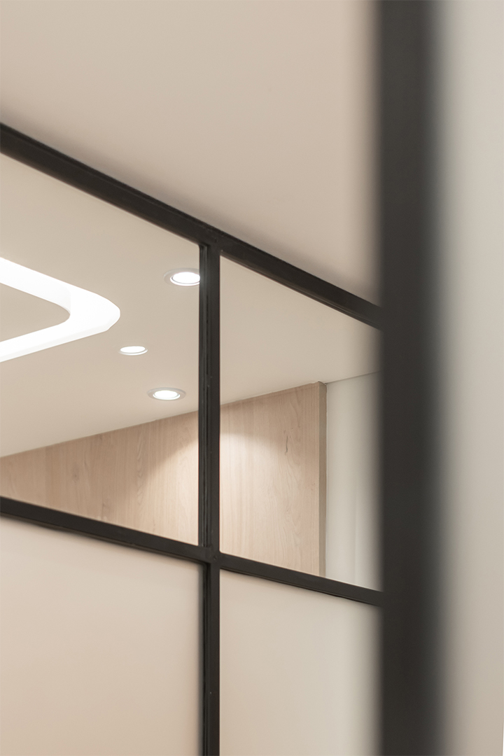 El proyecto se ubica en Pellegrini y Sarmiento, en un local de 105 m² que durante años funcionó como espacio gastronómico. La decisión principal fue vaciarlo por completo, conservando únicamente los muros de mampostería para generar un ambiente abierto y flexible. El acceso desde la calle conduce a una recepción, separada del área central mediante un mobiliario de chapa diseñado para dividir sin cortar la fluidez visual. En este sector se dispusieron una oficina privada y una sala de reuniones, resueltas como volúmenes de vidrio que aseguran amplitud y continuidad. El diseño buscó un espacio abierto con máxima atención al detalle, equilibrando funcionalidad y estética para crear un ámbito eficiente, contemporáneo y acogedor.