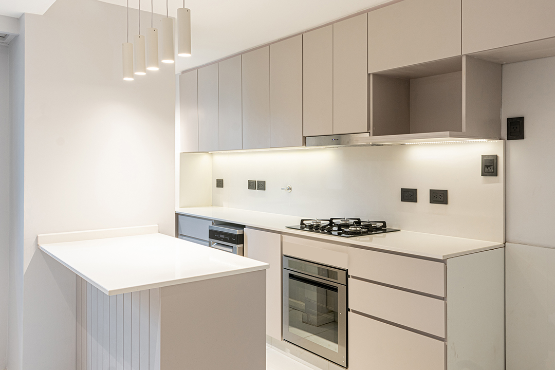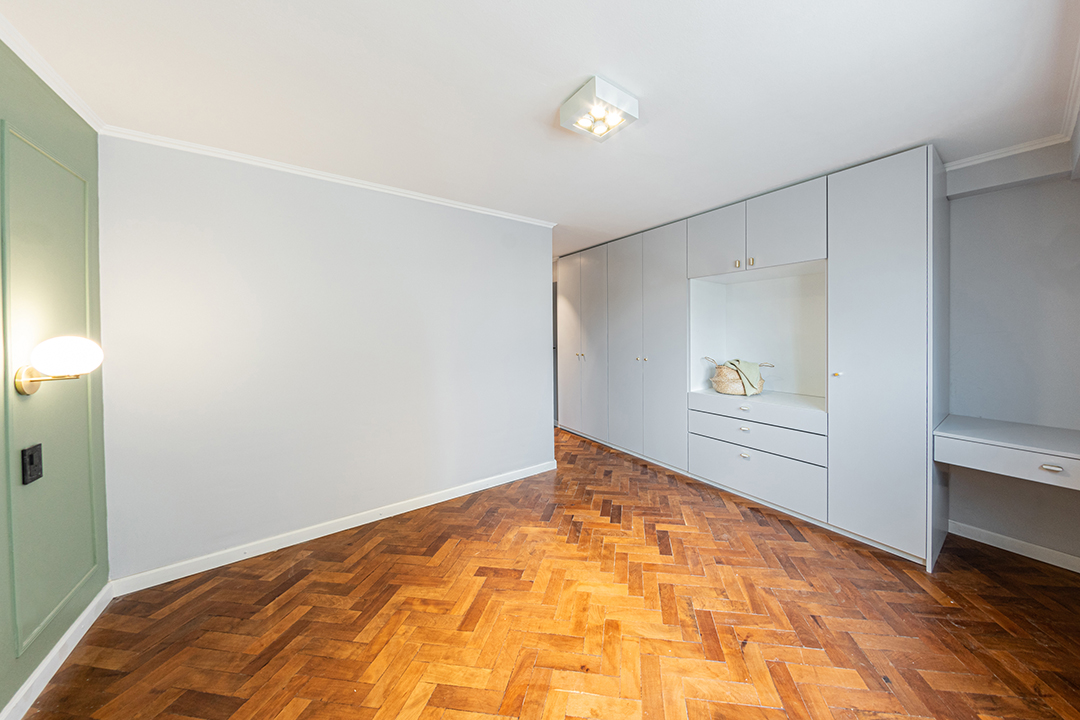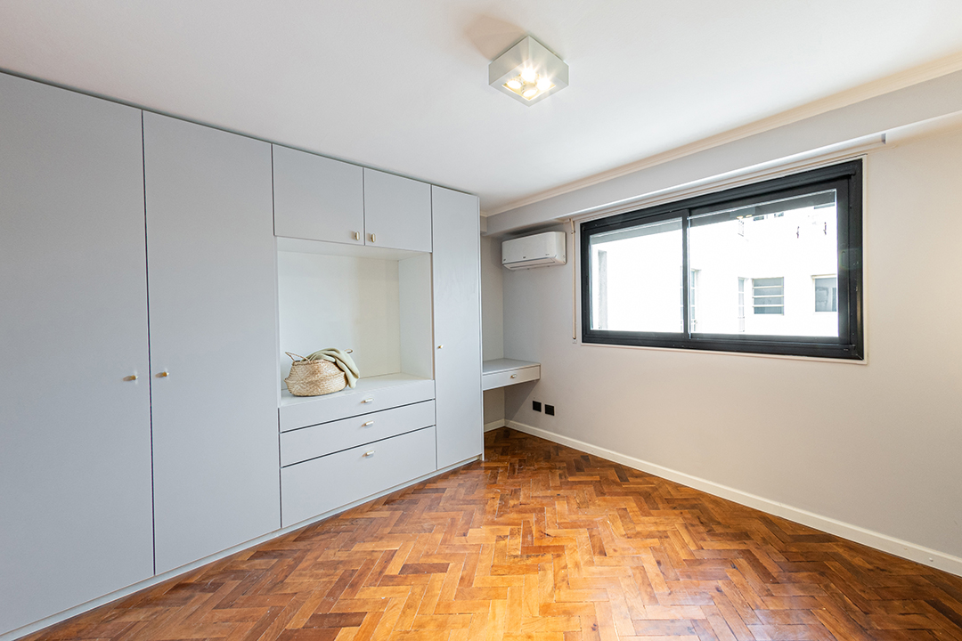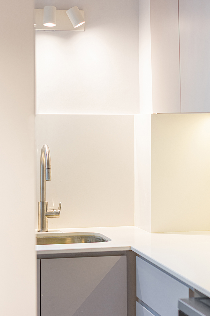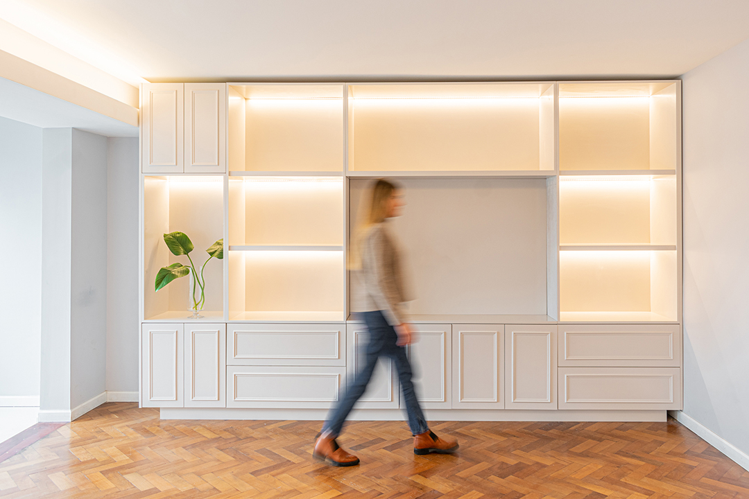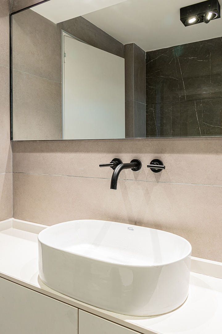 Reforma integral de un departamento de 130 m². La intervención abarcó todos los espacios, renovando instalaciones, carpinterías y revestimientos, e incorporando una nueva iluminación que potencia la amplitud y la luz natural. La cocina se redefinió con líneas simples y una paleta neutra, mientras que en el estar un mueble a medida organiza y aporta calidez. Los baños se transformaron por completo, priorizando la pureza formal y la continuidad visual. Cada ambiente fue pensado para lograr una estética coherente, contemporánea y atemporal.