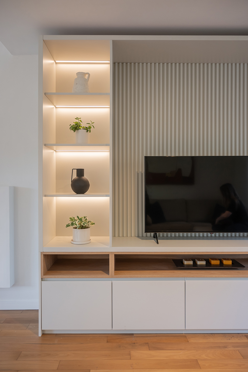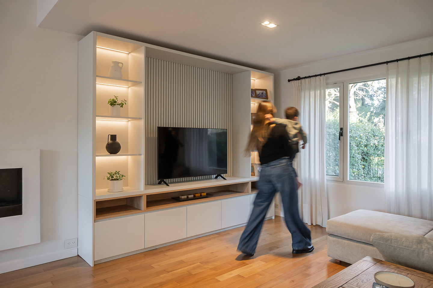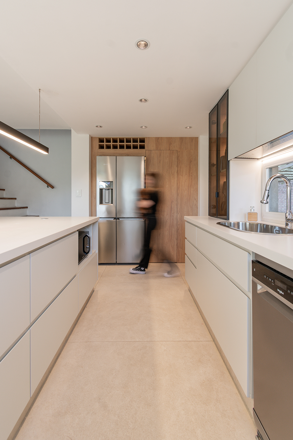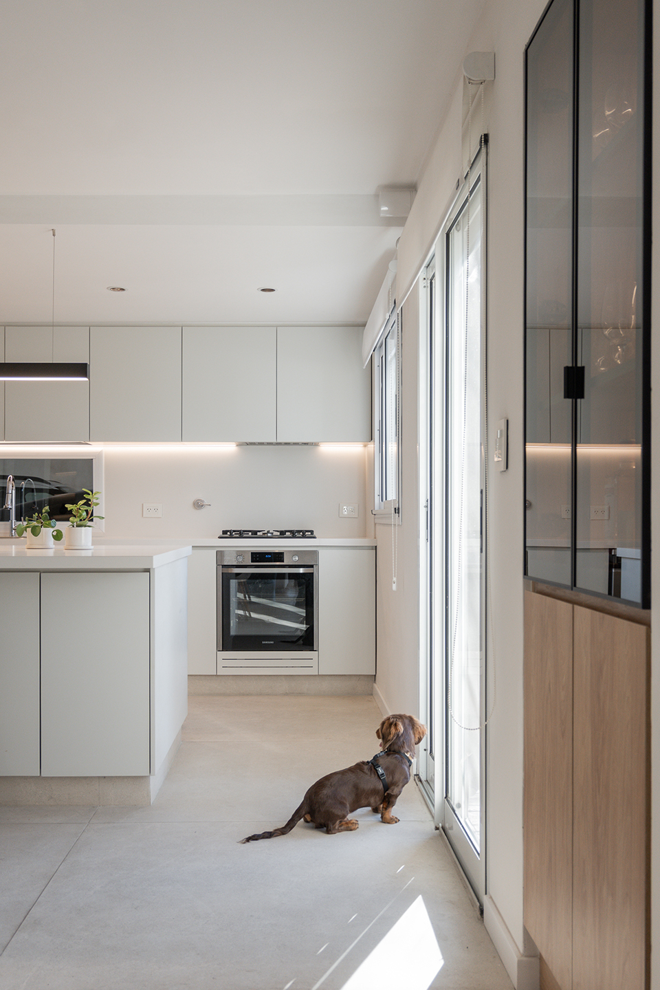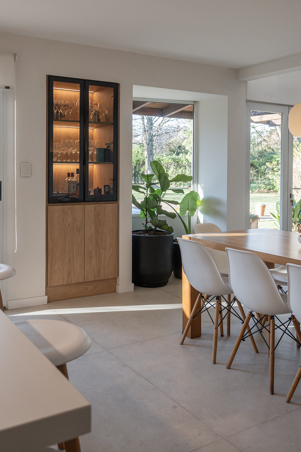 En esta vivienda, originalmente habitada por una familia de cinco integrantes, actualmente residen únicamente los padres. Este cambio en la dinámica familiar motivó la necesidad de replantear los espacios. La casa presentaba una organización fragmentada, con la cocina, el comedor y el living separados por muros divisorios. La propuesta de reforma consiste en eliminar estas paredes para generar un único ambiente integrado, donde la cocina se convierte en el verdadero corazón del hogar, articulando las áreas sociales y potenciando la vida cotidiana en un espacio amplio, luminoso y unificado.